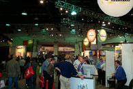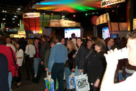 Anyway, Monday night was Showstoppers, which has grown almost out of control. The concept is a good one: Smaller companies tend to get lost in the klaxon call that is Comdex, so a group of these companies gets together, rents a hall, and then invites the press in for free food, drinks, and product demos. Predictably, we're all over this, like flies on a bug light. Most respectable journalists aren't into cheap freebies like t-shirts and cheap plastic gadgets (ahem), but throw some shrimp and beer in front of us and we'll claw at each other like teenagers trying to get into a Brittney Spears concert. It's sort of humiliating, to be honest.