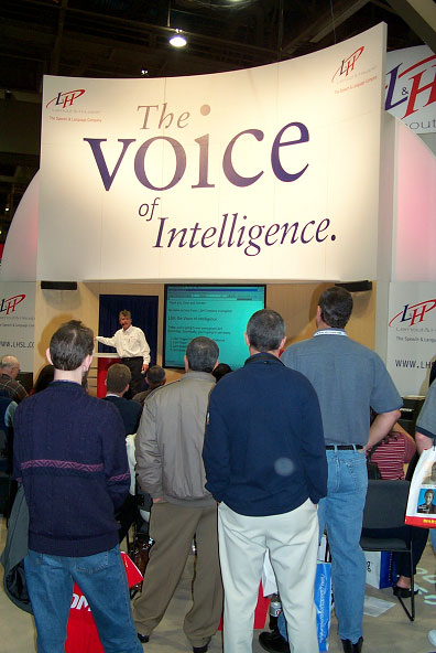 I found the booth a lot more quickly than I thought I would, but then I realized that I had forgotten to write down the name of the person I'd be meeting with at L&H. So I sat down at a table in their booth (what the heck) and fired up the laptop. When I opened Outlook to the meeting, I noticed something odd: Despite the fact that it was marked down for 11:00, the text of the meeting schedule, which I had copied in full from an earlier email noted that the time I was to meet them was 2:00 p.m., not 11:00 a.m. Likewise, each of my further meetings was three hours off as well.