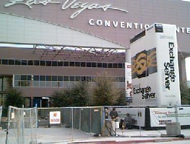 Las Vegas Convention Center with the floppy version of Exchange Server out front (that's Paul behind the construction fence).