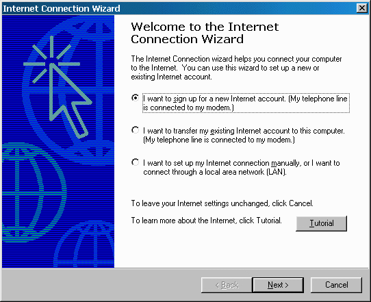 will be an Internet Connection Wizard shortcut. From this simple