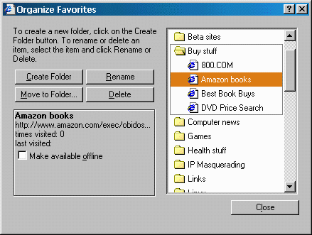 HTML-based, as it was in early betas) Organize Favorites dialog (Figure), which allows you to organize your Web, network, and local