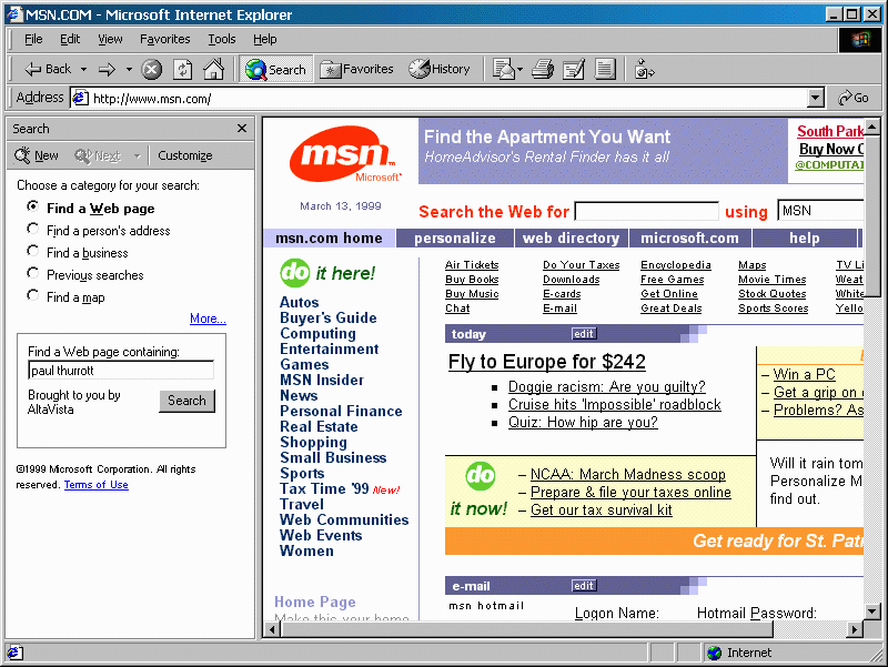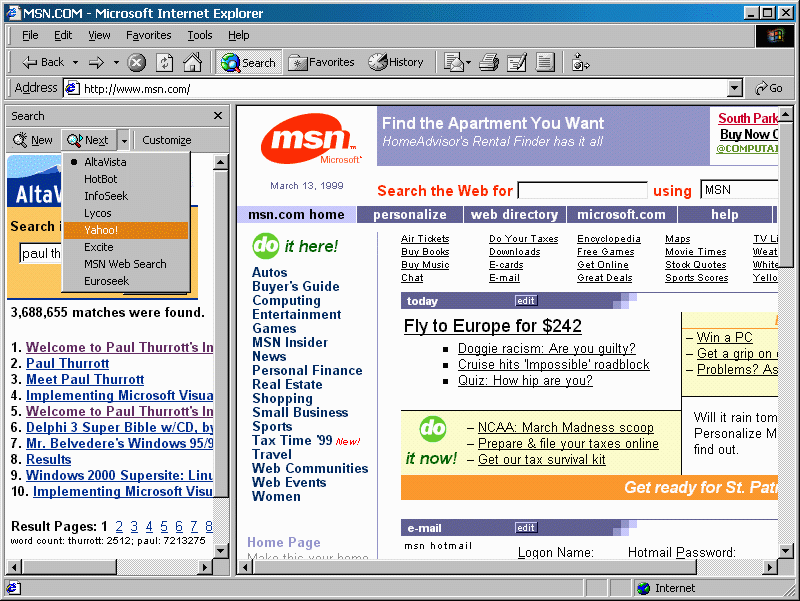default search engine (Alta Vista, Excite, or whatever), the new