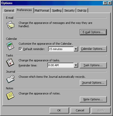 The Outlook 98 Options dialog box uses a simple, efficient design.