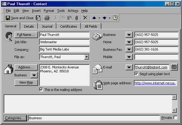 Contacts, like Calendar, is largely unchanged from Outlook 97. This