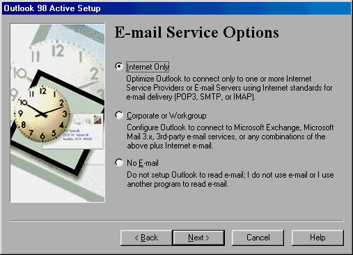 Outlook 98 Active Setup lets you choose the appropriate type of email.