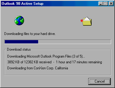 Outlook 98 Active Setup will continue the download later if you get disconnected.