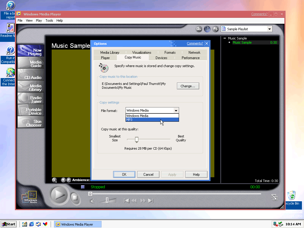 Saints be praised: Windows Media Player 8 lets you encode audio in MP3 format!