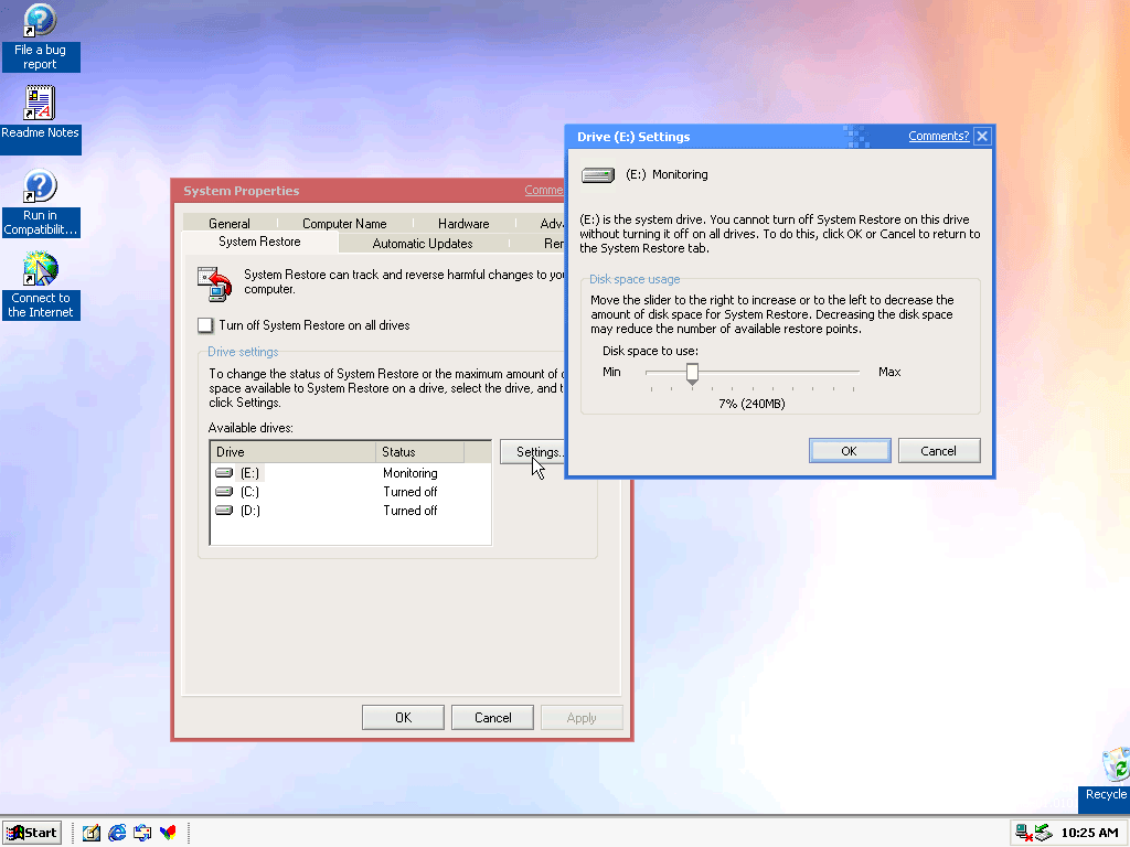 System Restore is more powerful in Whistler, thanks to its per-drive settings.