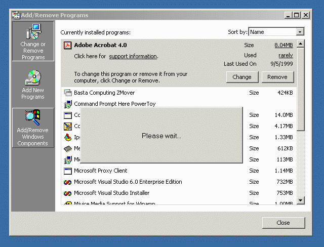 Programs, a "Please wait" alert lets you know that the