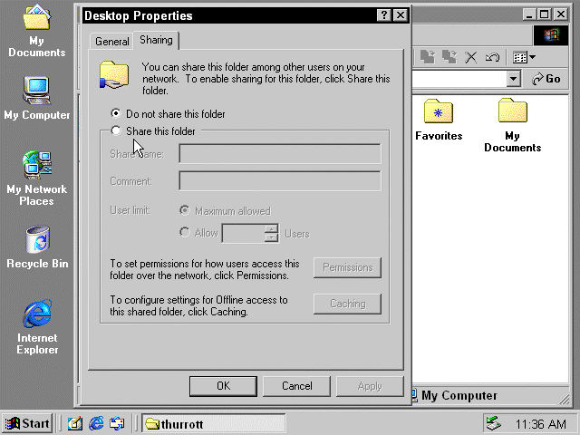 A final sharing option, caching, can also be set for users that may be accessing shares offline. You can allow or disallow caching of the share, and optionally determine how the share will cache documents and programs contained in the share if desired.
