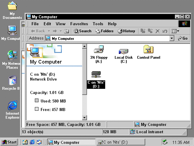 Once you've mapped a network drive, you can access it like any other drive in My Computer or Explorer. Mapped drives have a different icon to represent their purpose, but they function in the same manner as local drives (Figure).